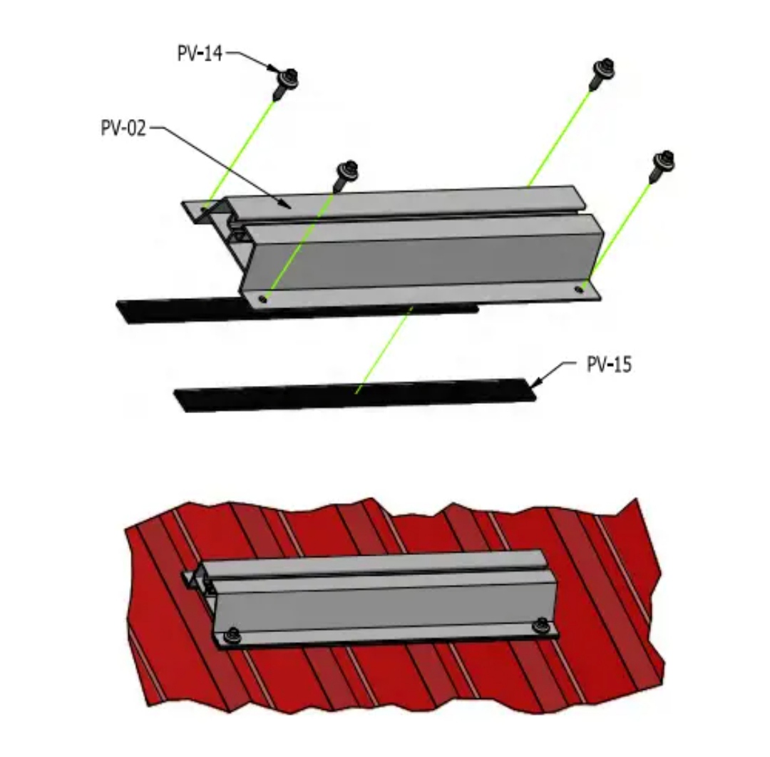 - Die Schraube wird mit einer Unterlegscheibe aus Edelstahl und einer Schicht aus vulkanisiertem EPDM montiert, die die Montagestelle abdichtet und das Eindringen von Wasser in das Montageloch verhindert.