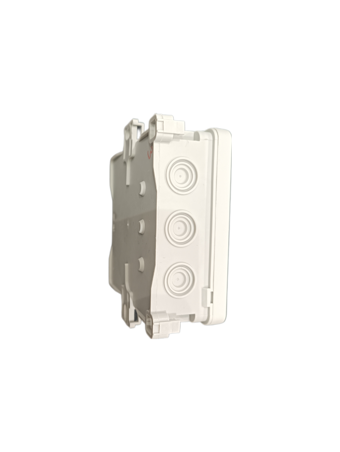 Aufputzdose, isolierend, abzweigend. Besitzt einen Einrast-Deckel. Ideal als Schutzhülle für Speisungsverteilung geeignet.