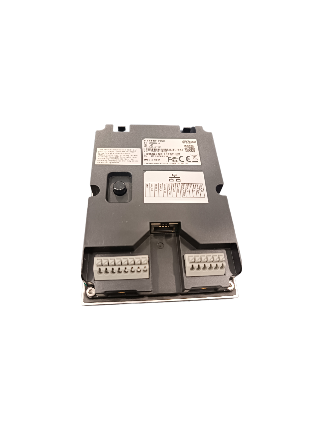 Außen IP-Video-Türsprechstelle, 2mm, 2MP, Kamerawinkel 160°, Tag/Nacht-Kamera, H.264, WDR, Alarm in/out 1/1, für 1 Teilnehmer, Schlossentriegelungen, 1x Relaisausgang, 1x RS485, 1x Sabotageschalter, integr. Mikro, integr. Lautsprecher, IP55, IK07, 12W/12VDC, PoE, Betriebstemperatur: -30°C bis +60°C, Abmessungen: 130x96x28,5mm;