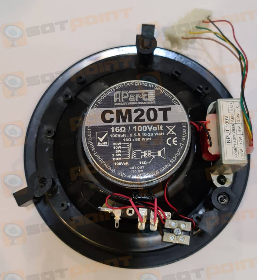 Der Apart CM20T 2-Wege Einbaulautsprecher eignet sich sowohl für den 16 Ohm als auch 100V Betrieb. Im 16 Ohm Betrieb können bis zu vier CM20T Lautsprecher an jeden Kanal eines gebräuchlichen 4 Ohm Verstärkers angeschlossen werden. Für den 100V Betrieb wurde der CM20T mit einem hochwertigen 20W/100V Transformator mit verschiedenen Leistungsabgriffen ausgestattet. Daher eignet sich dieser Lautsprecher bestens für hohe Decken oder Orte mit hohem Hintergrundgeräuschpegel.
