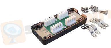 Für das Verbinden von Leitungen in Daten- und Telekommunikationsnetzen. Für die Verbindung von paargeschirmzen (pimF) Cat.6 und Cat.7 Datenleitungen steht ein dimensionierter Anschlussraum zur Verfügung. Die Basisplatine ist mit 4 Stück vierpoligen Leisten in LSA - Schneidtechnik bestückt. Die großflächige Schirmkontaktierung erfolgt unter Verwendung der im Lieferumfang enthaltenen Kabelschellen. Chassis und Deckel bestehen aus galvanisiertem Kunststoff. Der Verteiler eignet sich für die idrekte AP-Montage und kann daneben mittels doppelseitigem Klebeband oder Klettband montiert werden.