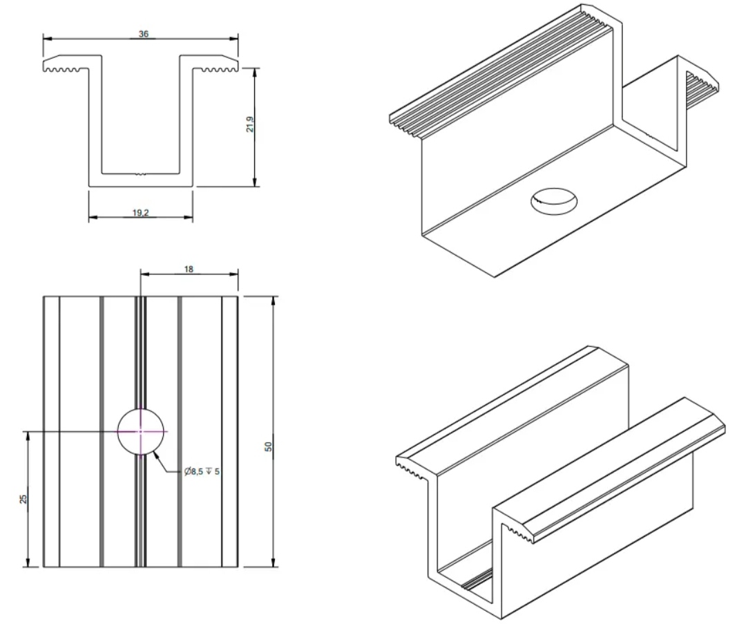 Sie ist aus hochwertigem 6060er Aluminium gefertigt und zeichnet sich durch hohe Witterungsbeständigkeit aus. Die hohe Verarbeitungsqualität sorgt für eine dauerhafte Befestigung bei der Konstruktion von Photovoltaik-Paneelen.
