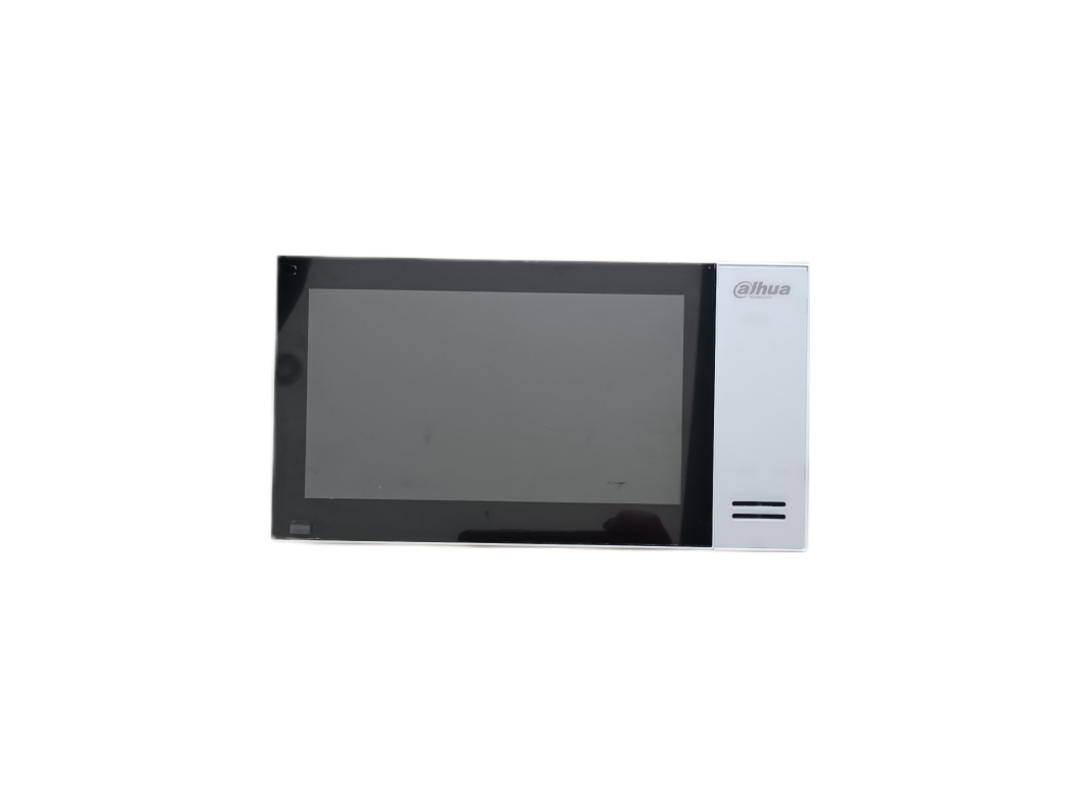 Touch-Screen-Monitor 7", 1024x600 Auflösung, IP, H.264, 6x Alarmeingänge, 1x Alarmausgang, 1x Audieingang, integr. Lautsprecher, 1x RJ-45, Notruftaste, Videogespräch, Aufzeichnen, Entsperren, Audio und Video Telefonie, 12VDC/6W, PoE, Betriebstemperatur: -10°C bis +55°C,